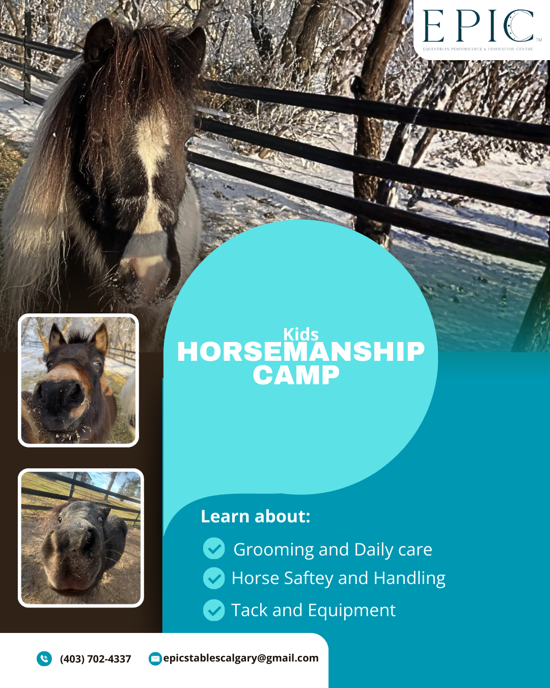 EPIC Stables is pleased to announce that we will be hosting a horsemanship camp this spring! This is a hands-on, interactive camp designed to teach kids how to safely and confidently work around horses, perfect for beginners or horse-loving kids wanting to deepen their knowledge! Join us for a 3-day Non-Riding Horsemanship Camp where kids […]